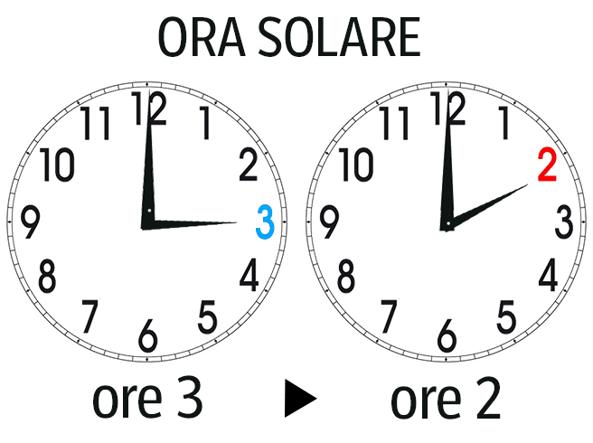 La notte fra sabato 26 e domenica 27 ottobre alle 3:00 del mattino le lancette dovranno essere spostate indietro di 60 minuti